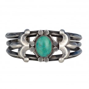 Stamped, twisted, cast, chiseled, hammered and swedged: the language used to describe the manipulation of silver in this collection references the implicit force used in silversmithing, but belies the delicacy of the finished product. From the sleek modernism of the White Hogan artists to the chiseled simplicity of early Navajo work and the classic pictorial stamps of later pieces, this group focuses on the most versatile form of jewelry...the bracelet. This collection has examples of the wide range of forms and techniques that Native American silver work used throughout the twentieth century. Suitable for men as well as women, for bohemians as much as businesspeople, the designs in this selection of vintage bracelets are varied and versatile, but above all, timeless.