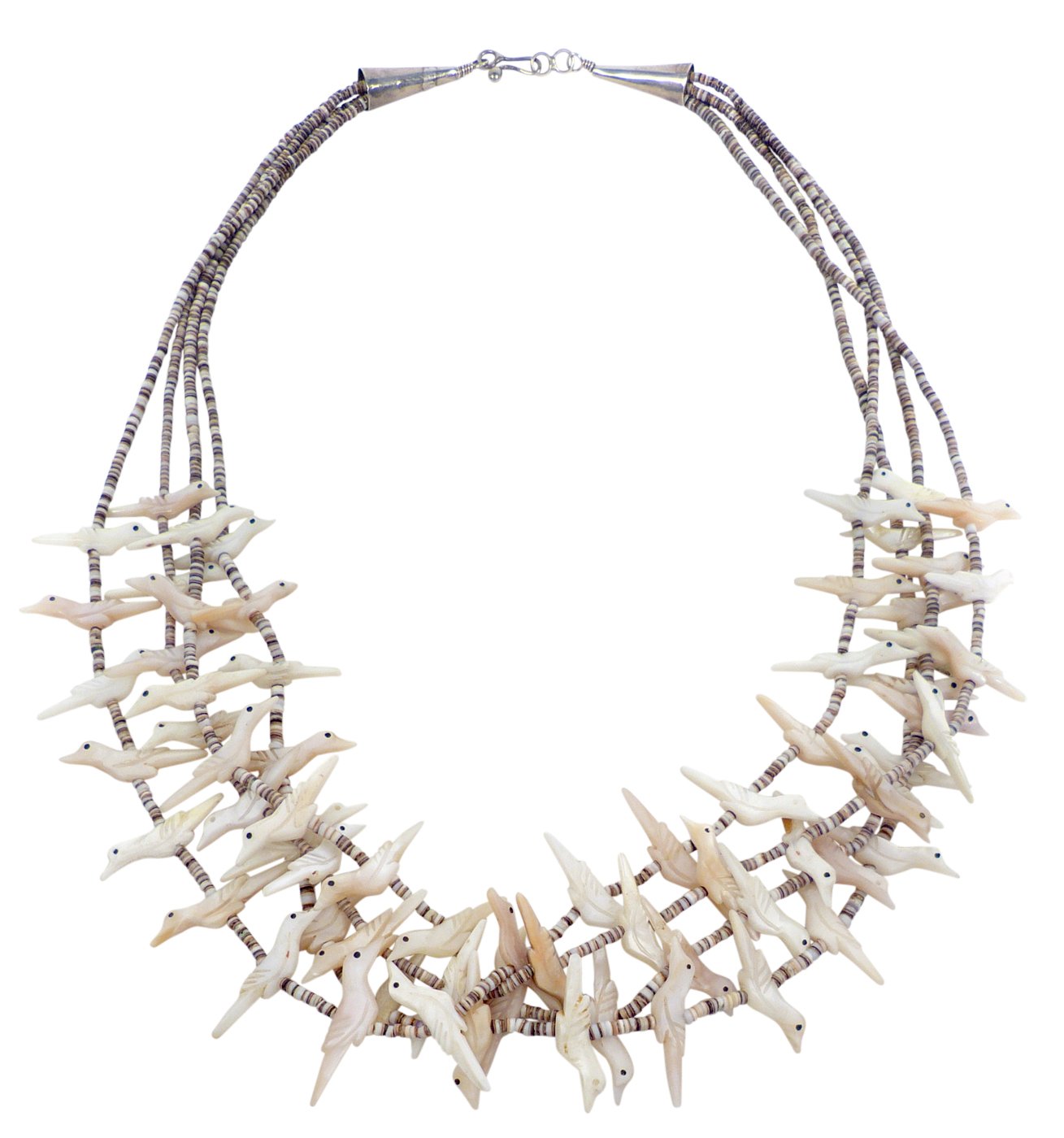 Zuni Four Strand Bird Fetish Necklace by David Tsikewa, c.1960