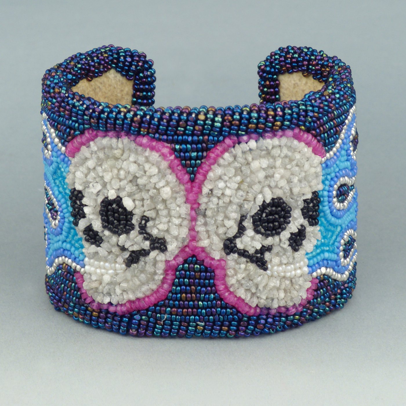 Teri Greeves Kiowa Beaded Cuff with Raw Diamond Skulls
