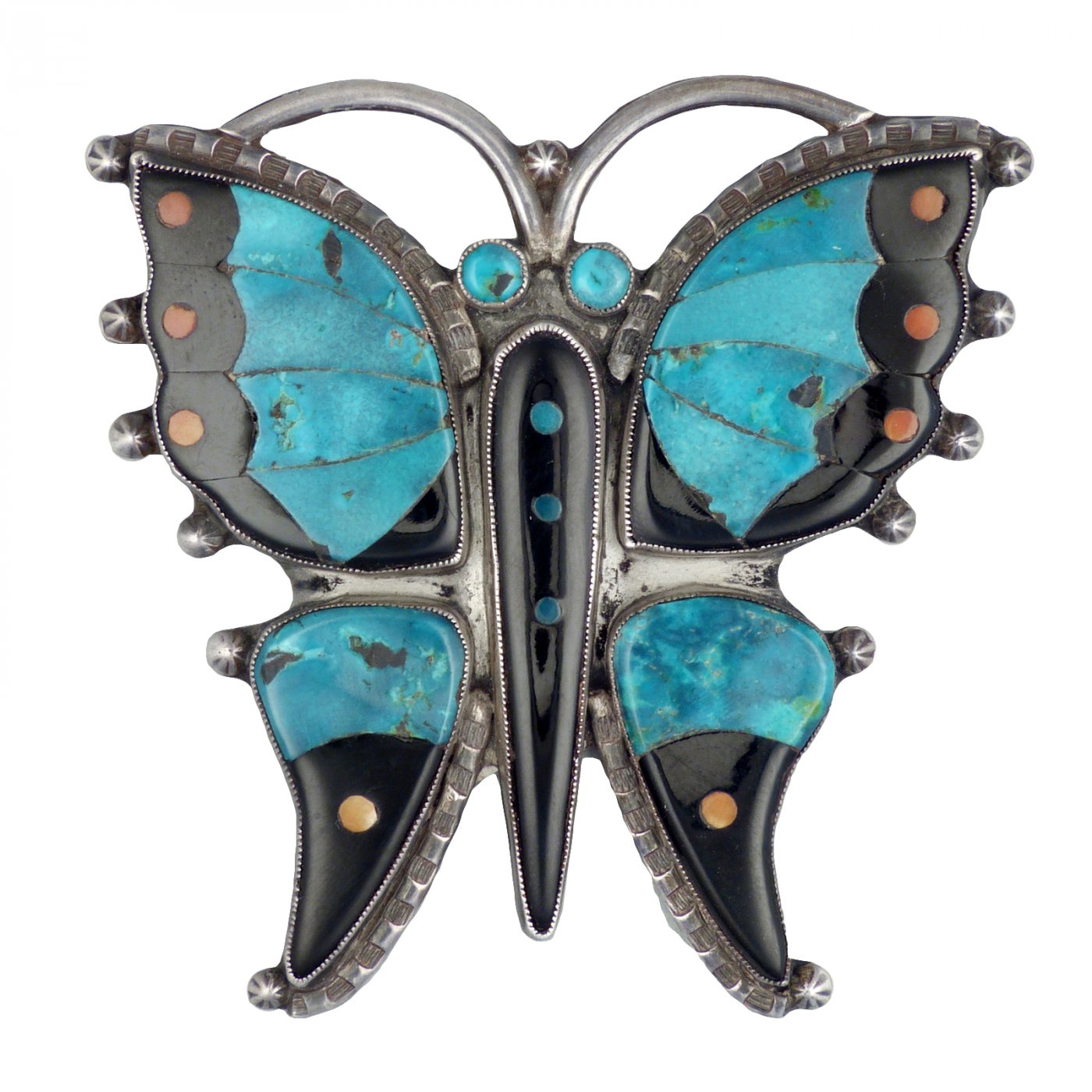 Zuni Inlay Butterfly Pin by Leo Poblano, c.1950's
