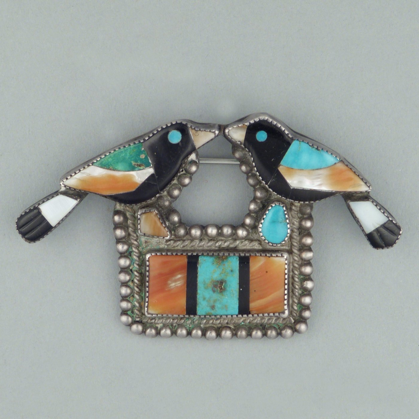Zuni Inlay Pin with Two Birds, c.1950's