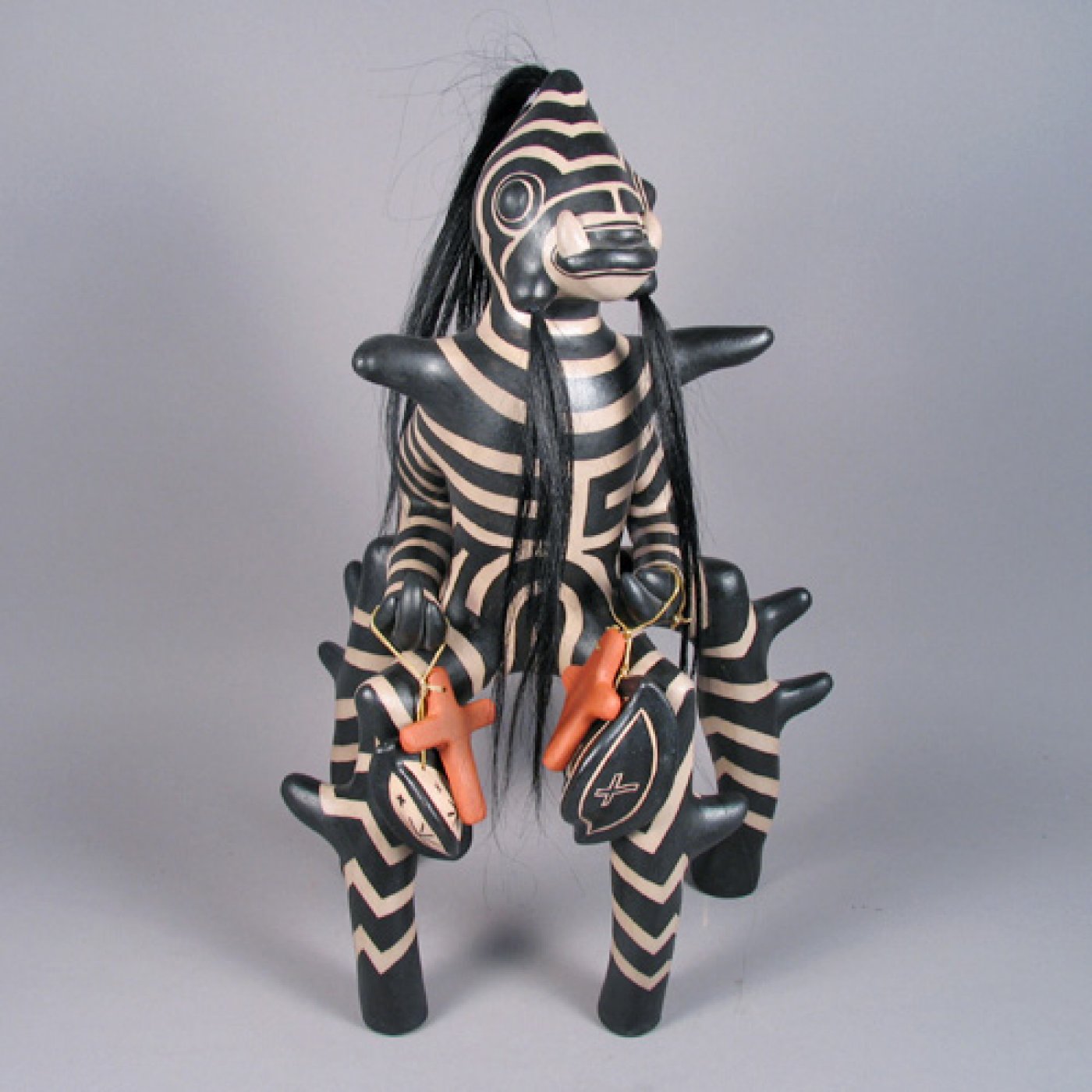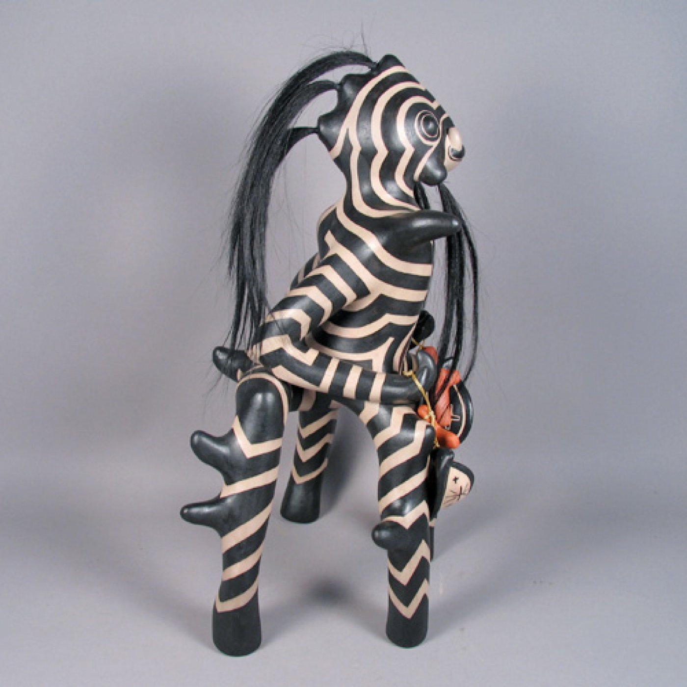 Material: Cochiti red clay, white clay slip, black(wild spinach) paint and hair