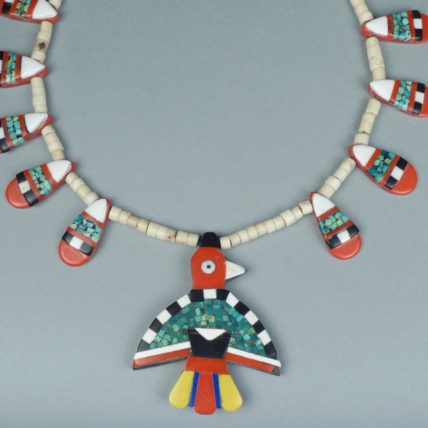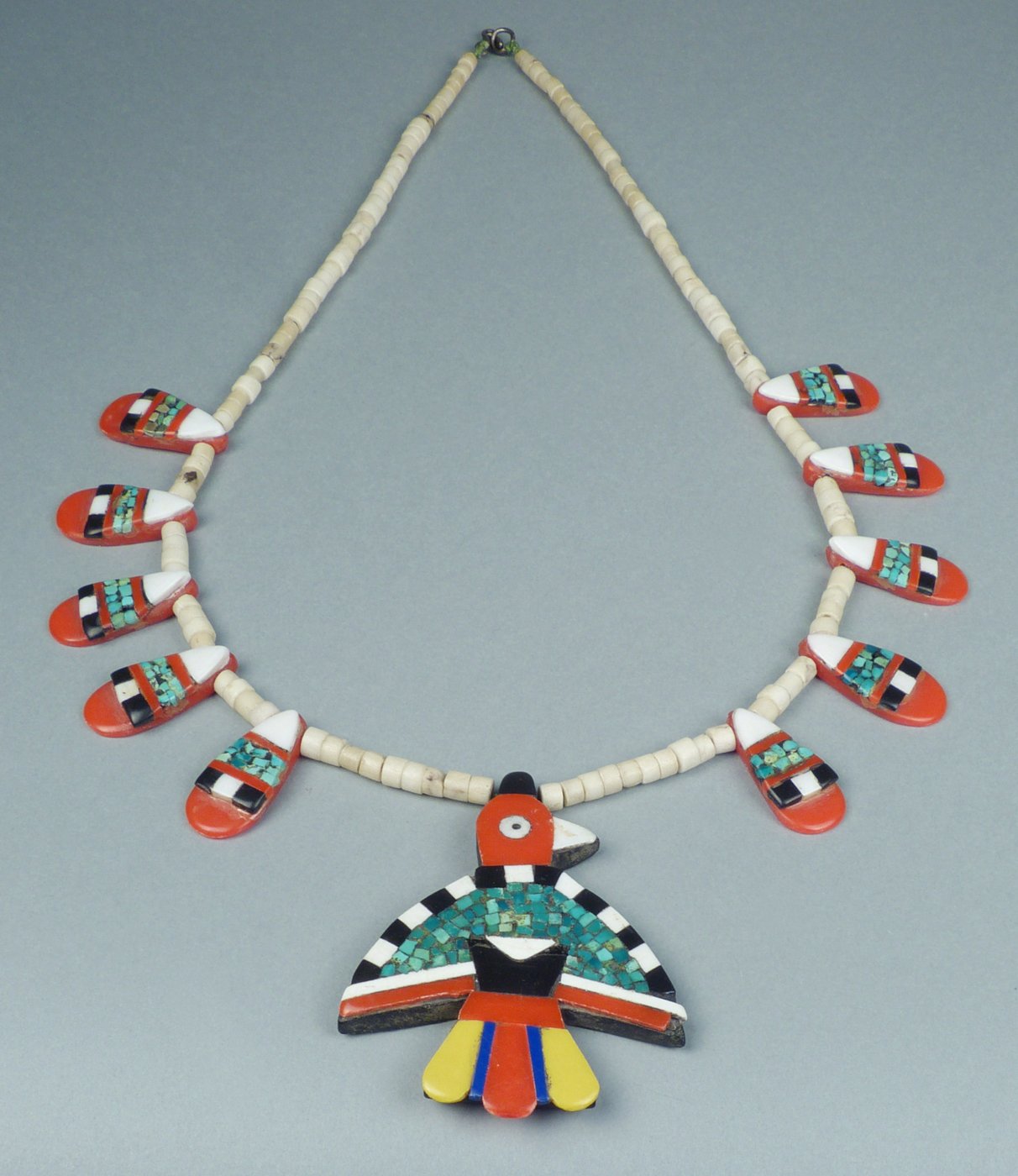 Santo Domingo Depression Era Tab Necklace with Thunderbird Pendant, c.1940-1950