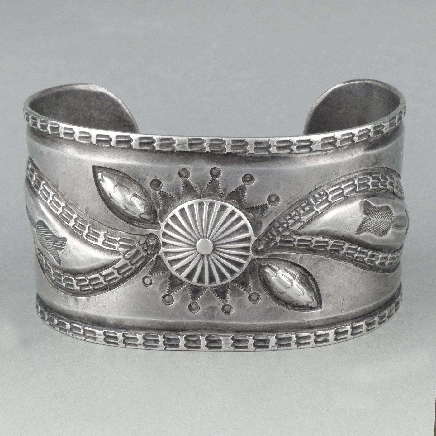 Navajo Wide Stamped Silver Cuff with Repoussé, c.1930's