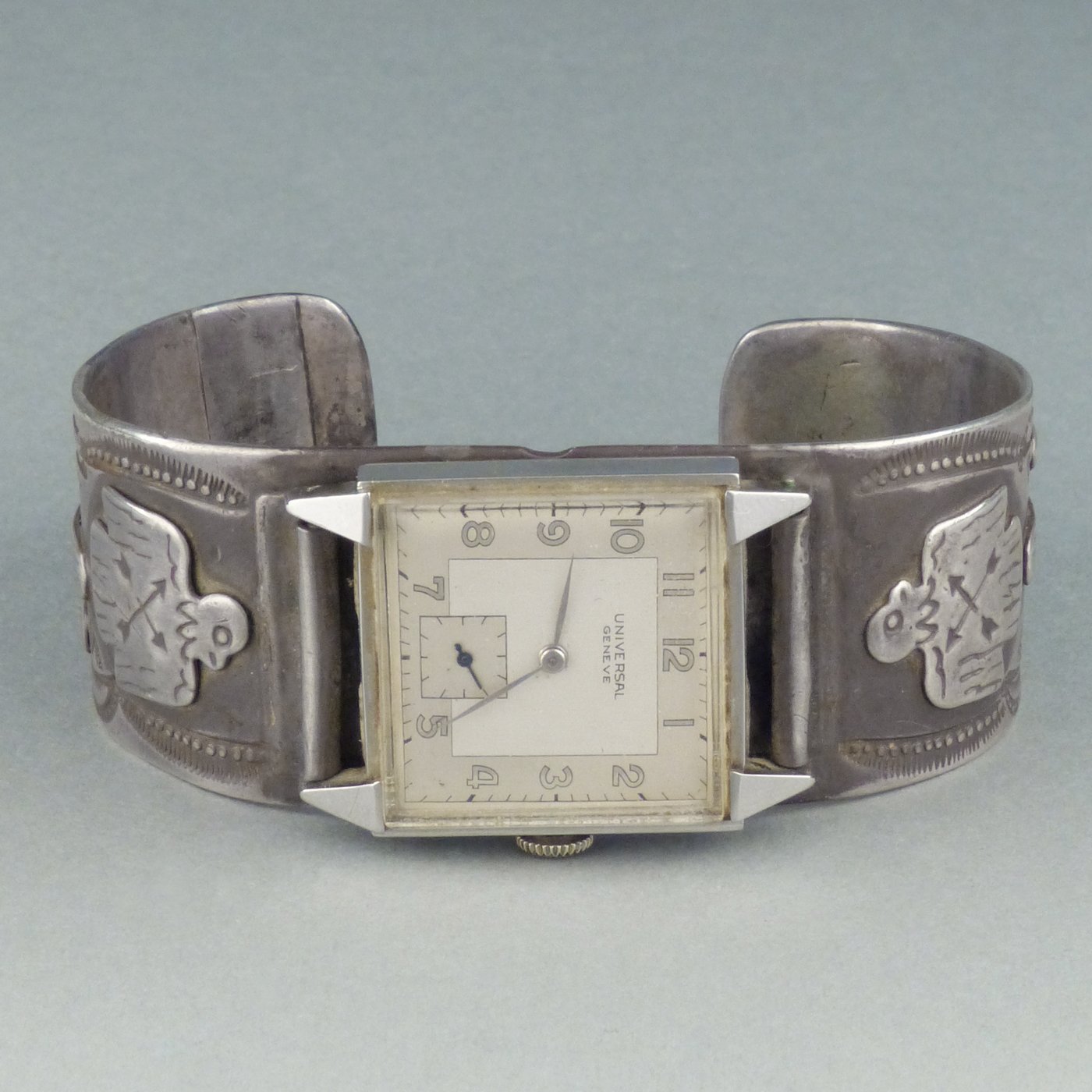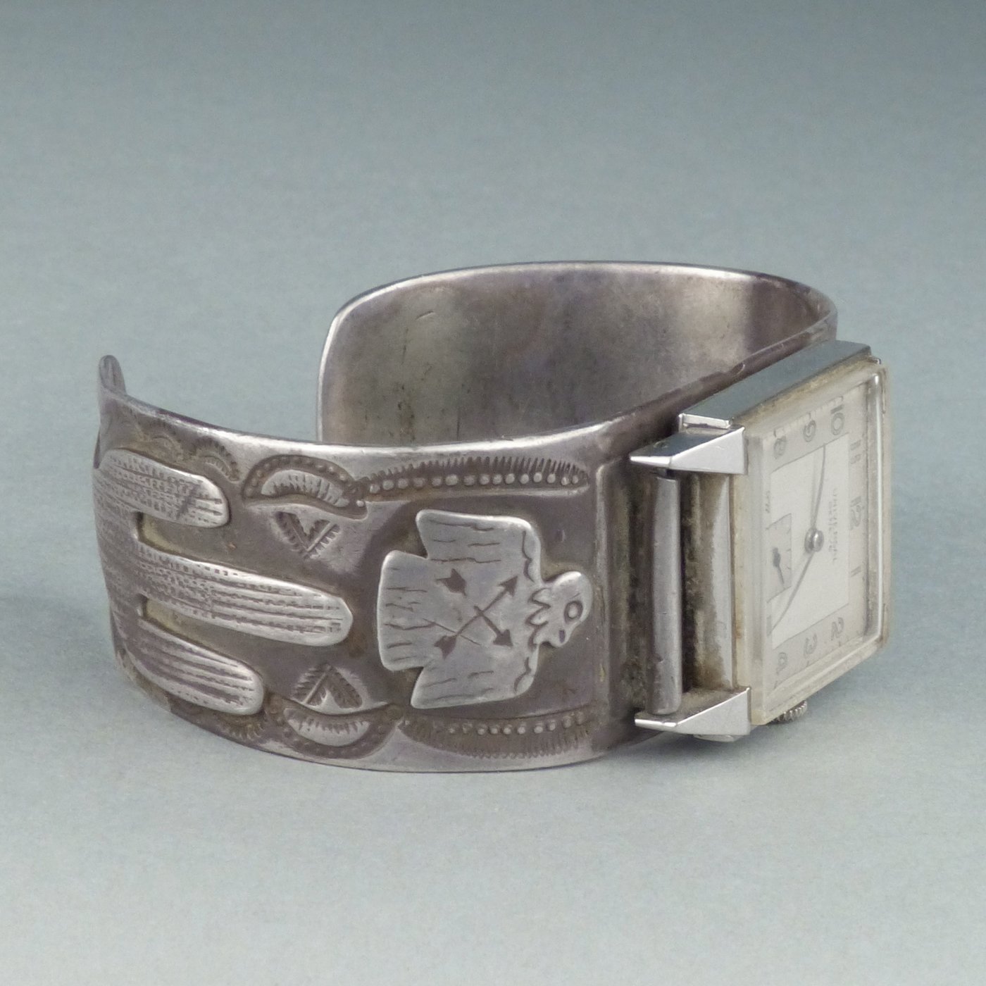 Hopi Silver Watch Cuff by Ralph Tawangyaouma, c.1940
