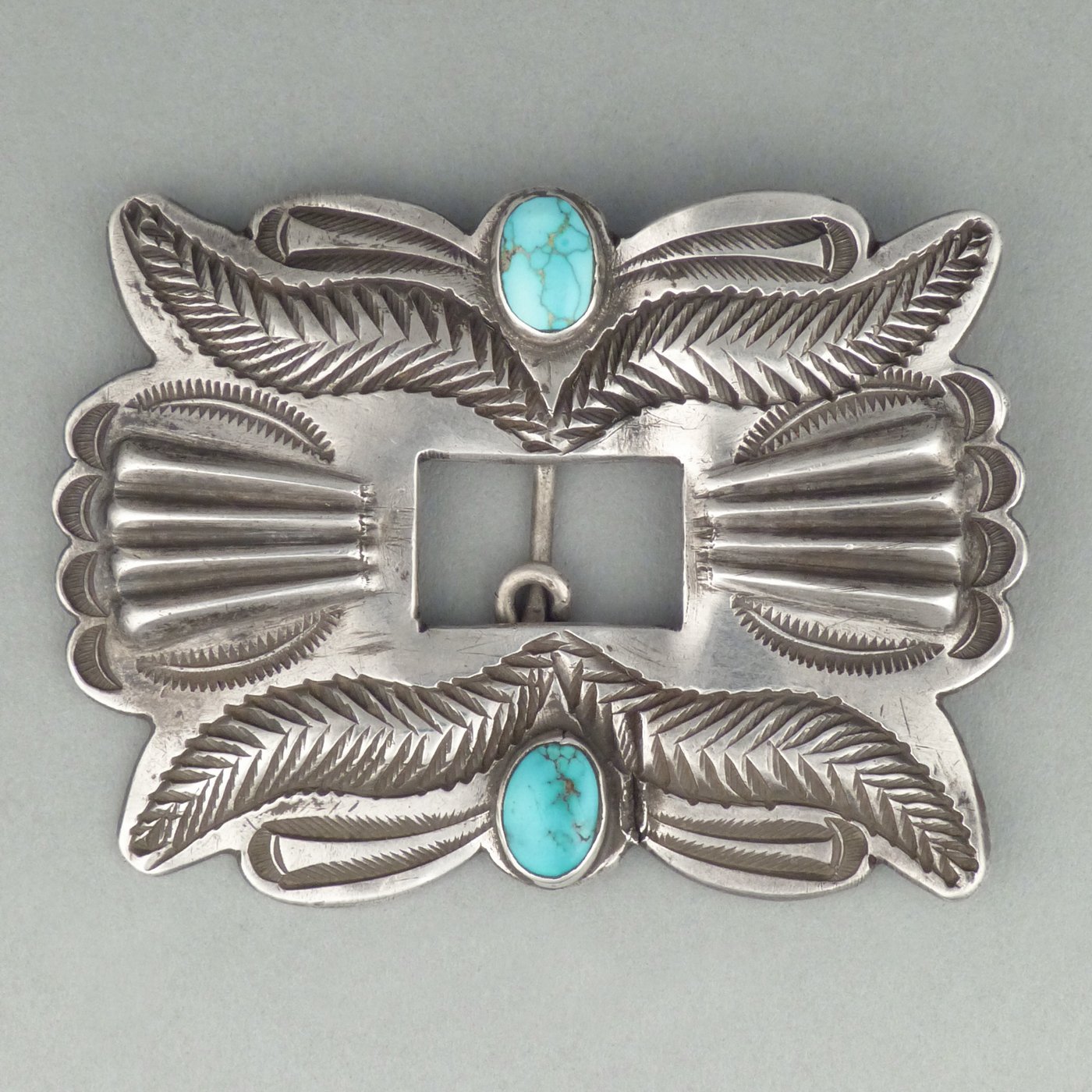 Navajo Silver Belt Buckle with Turquoise Cabochons, c.1940