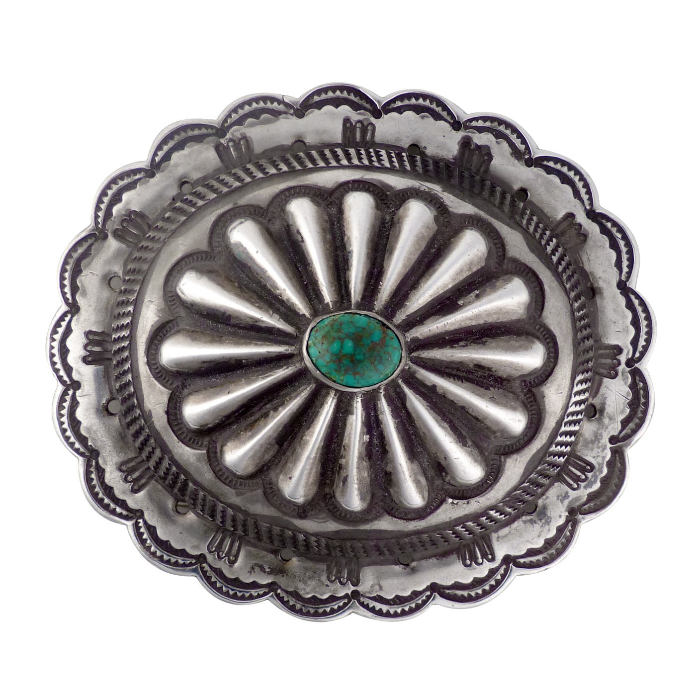 Navajo Stamped Silver Concho Belt Buckle with Turquoise, c.1930