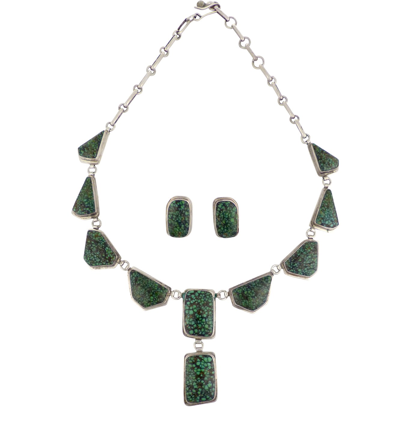 David and Alice Lister, Navajo Silver Necklace and Earring Set with Turquoise Cabochons