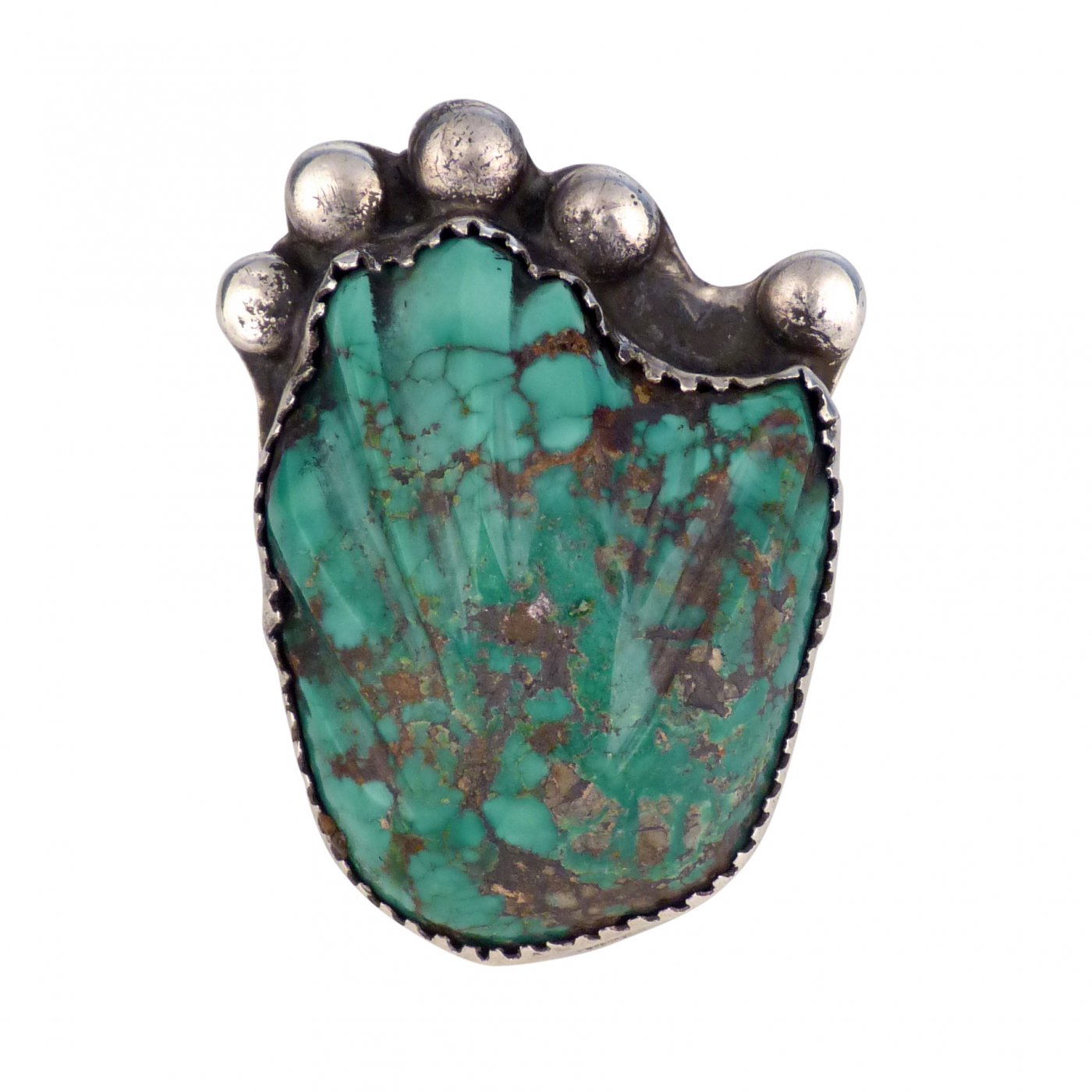 Leekya Deyuse, Zuni Silver Ring with Carved Turquoise Leaf Cabochon, c.1940