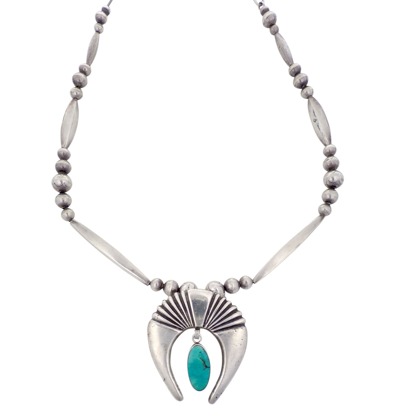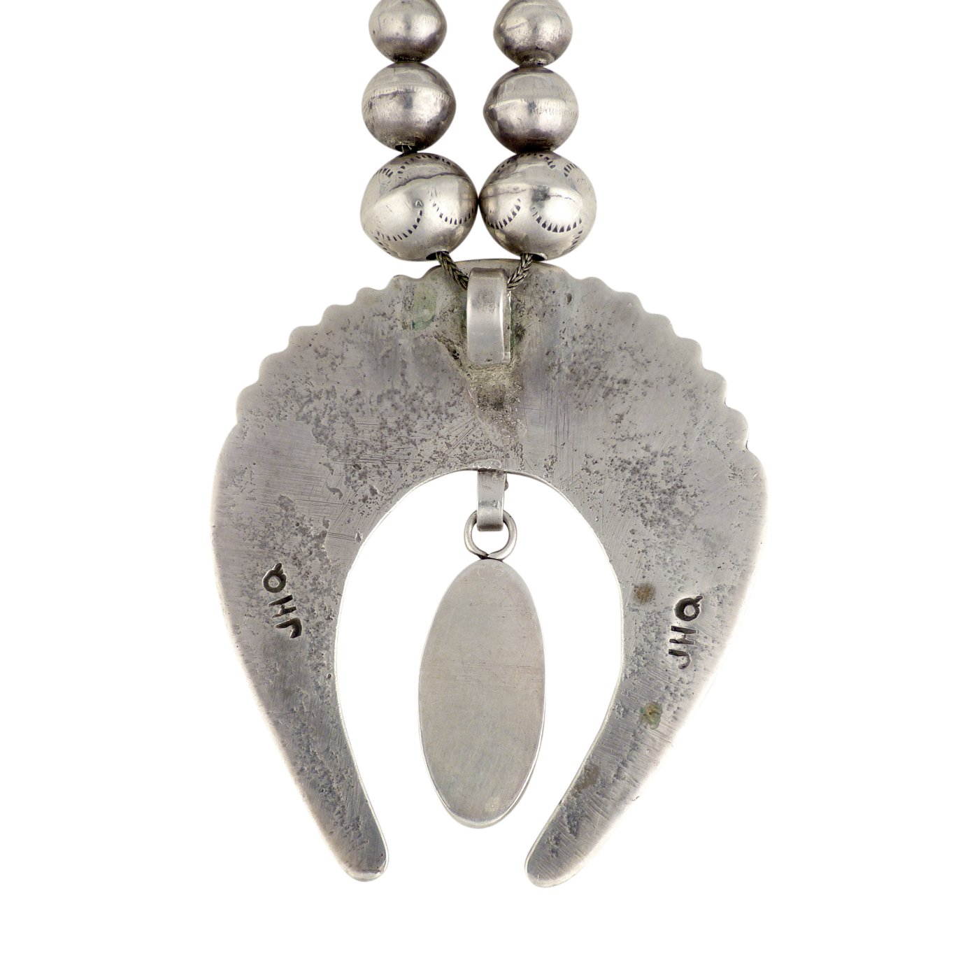 Joe Herrera Quintana, Silver Bead Necklace with Cast Naja and Turquoise Cabochon, c.1950