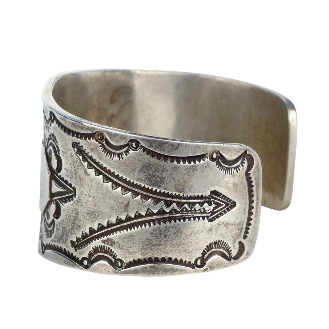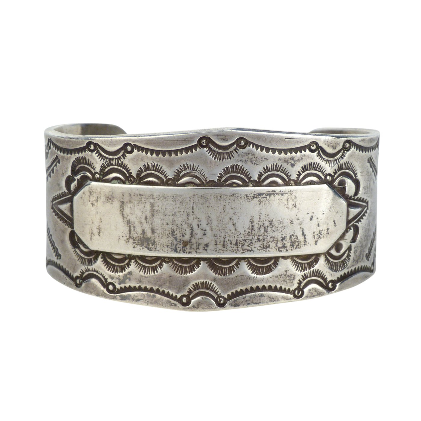 Navajo Stamped Silver Bracelet with Plate Overlay, c.1940