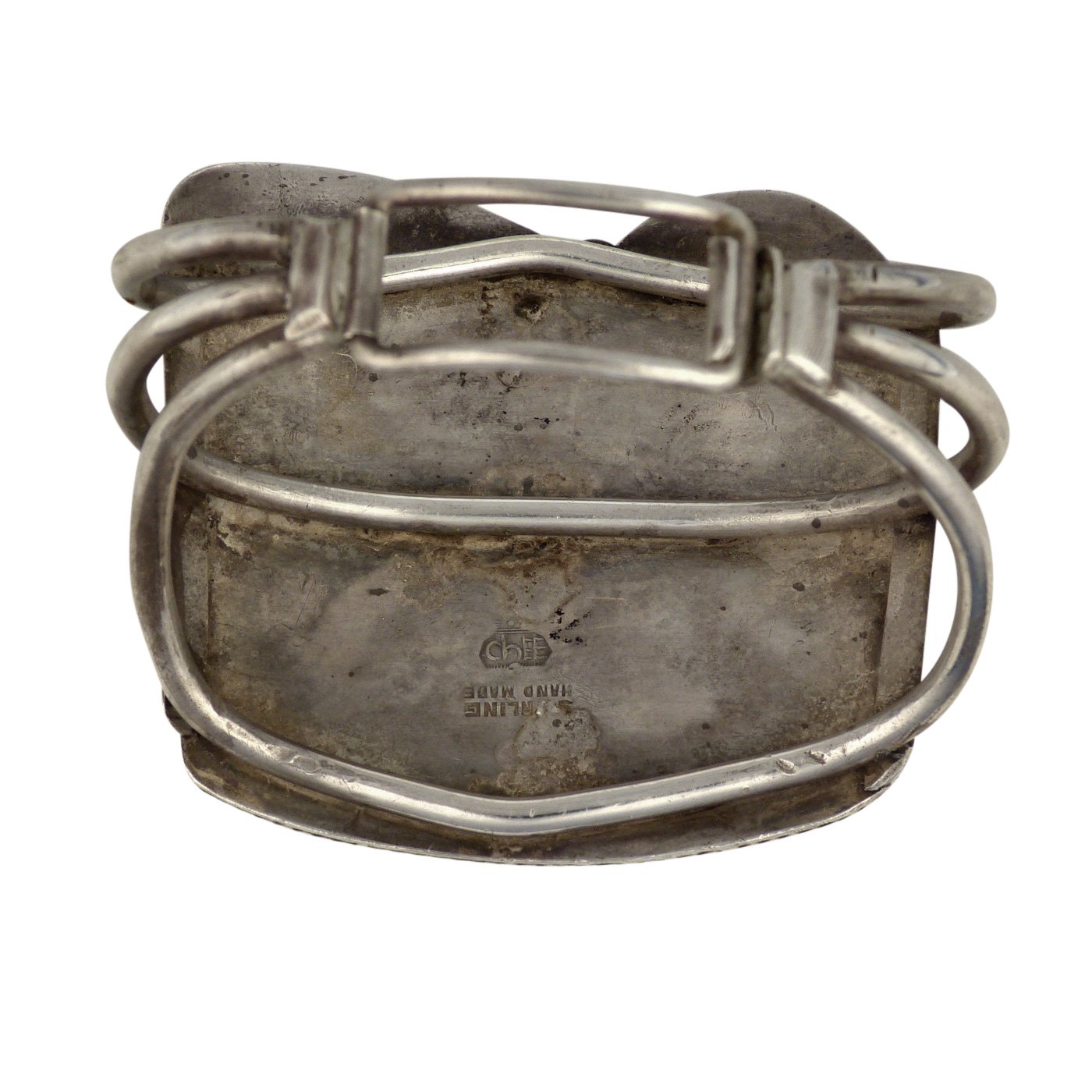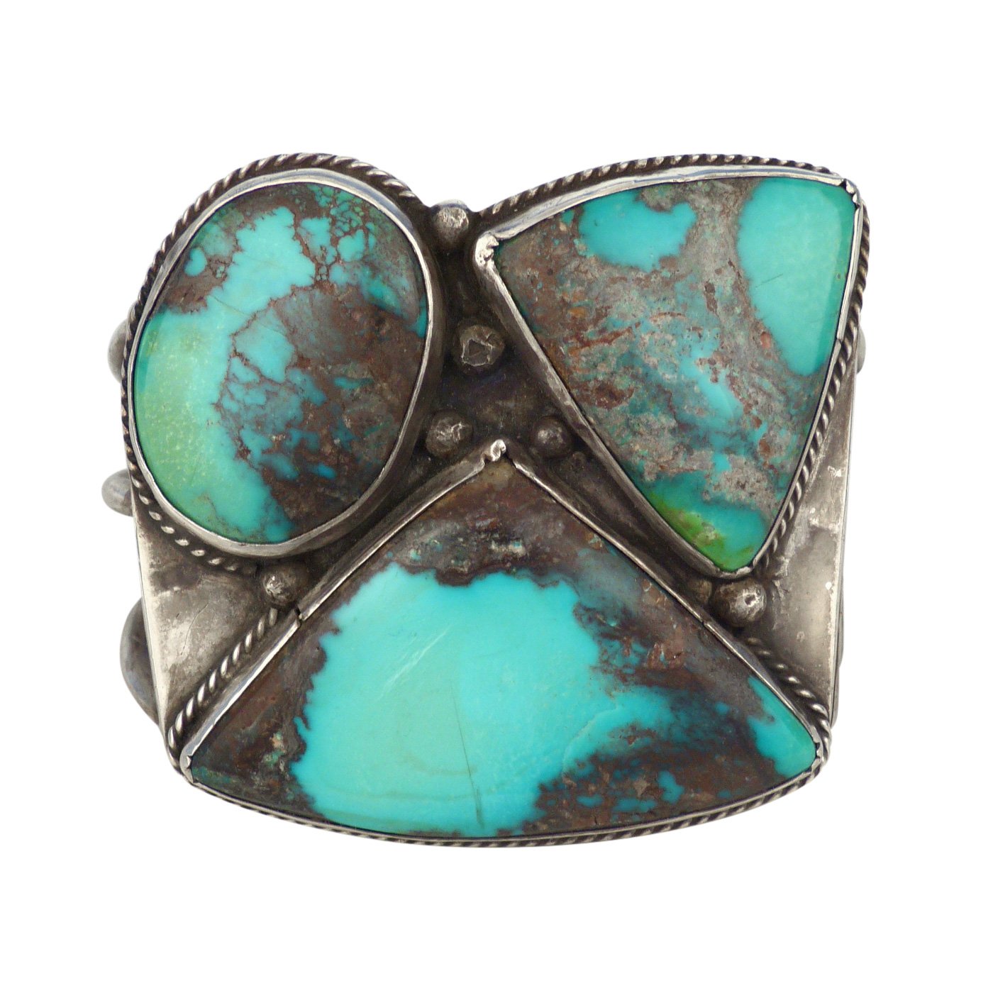 Mark Chee, Navajo Silver Bracelet with Three Bisbee Turquoise Cabochons
