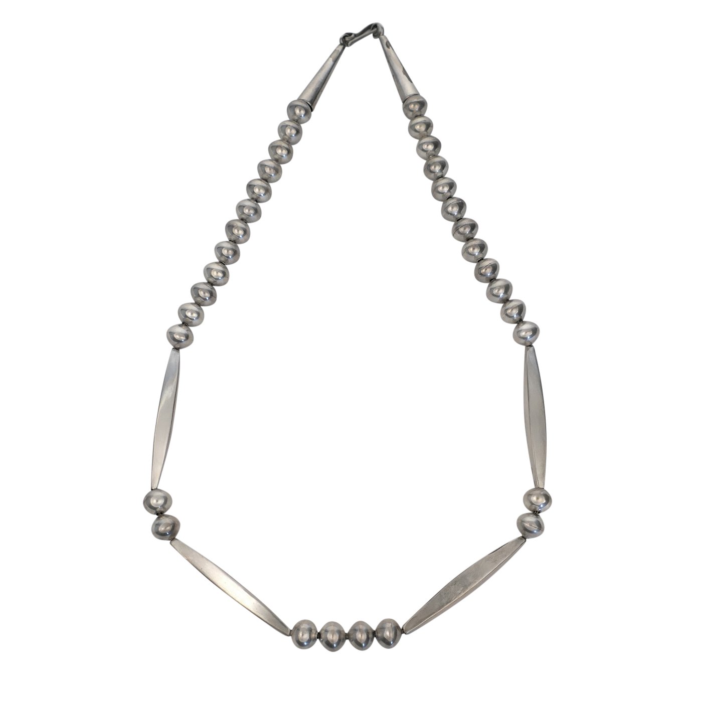 Cippy Crazy Horse, Cochiti Silver Bead Necklace