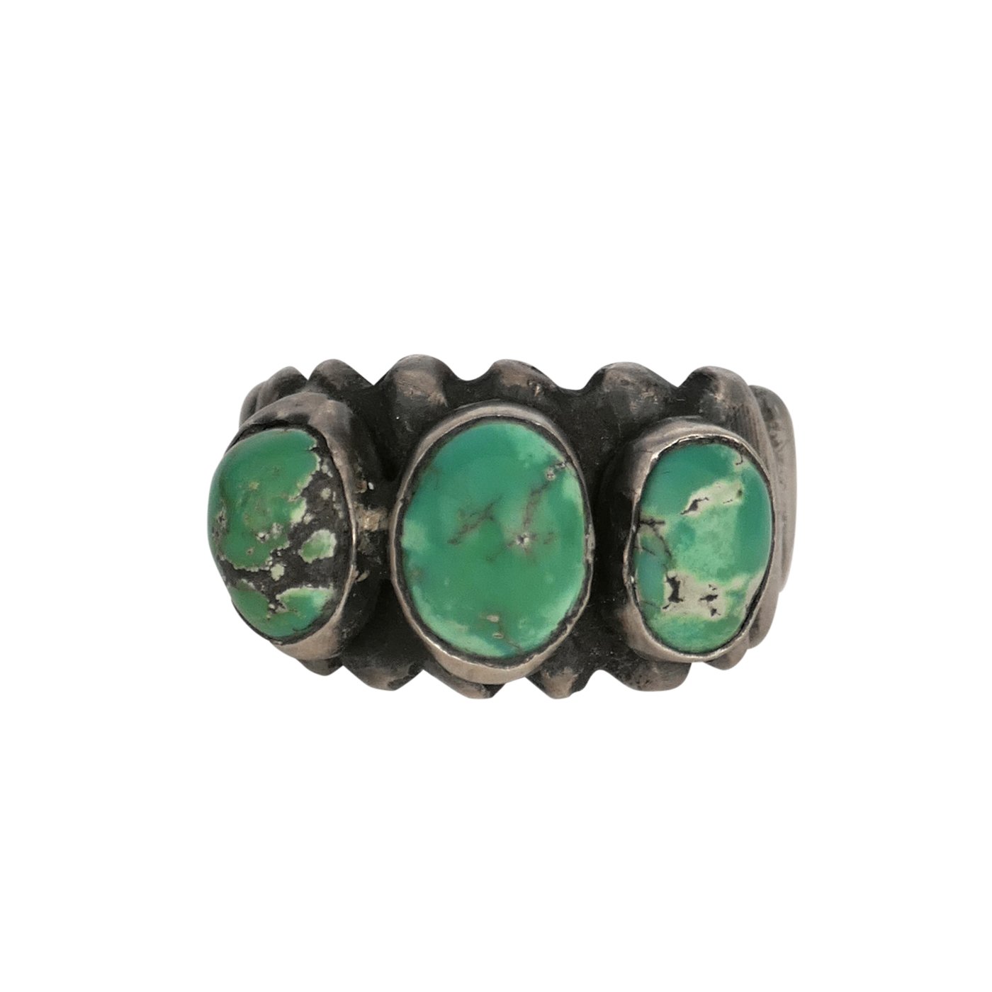 Navajo Cast Silver Ring with Three Turquoise Cabochons, c.1940