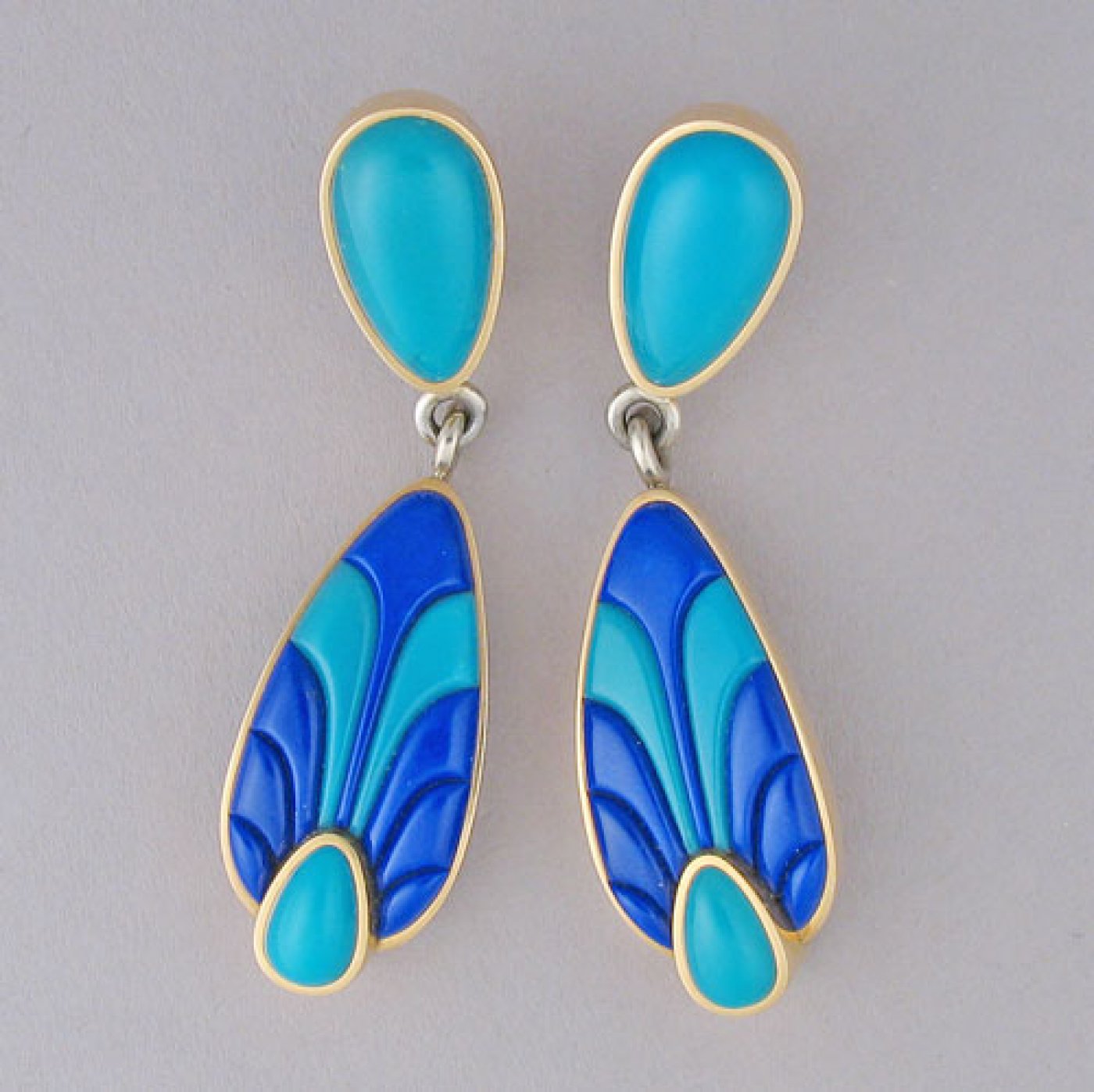 Emery Ohmsatte Zuni Gold Earrings with Inlay